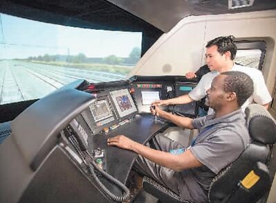 日前,來自泰國、斯里蘭卡、老撾等13個(gè)國家的63名鐵路管理人員來到武漢高鐵訓(xùn)練段進(jìn)行參訪交流活動。在“一帶一路”背景下,2015年開始武漢高鐵訓(xùn)練段已舉辦了泰國、老撾等14批涉外鐵路技能培訓(xùn)班,培訓(xùn)涉外學(xué)員400余人次。圖為來自肯尼亞的賈斯特斯·卡洛·姆文加在高鐵模擬駕駛倉內(nèi)體驗(yàn)實(shí)際操作。(新華社記者 肖藝九攝)