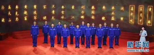 ▲在主持人的引導(dǎo)下,中船重工第七六〇研究所抗災(zāi)搶險(xiǎn)英雄群體中的14位同志(另外3位同志犧牲)參加發(fā)布儀式