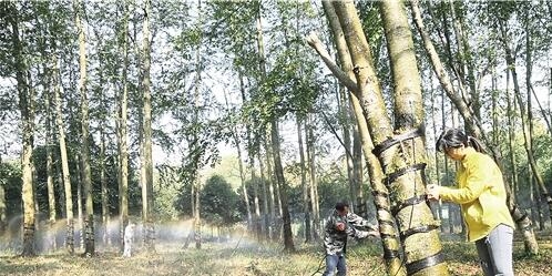 11月22日,江西省分宜縣中國(guó)林科院亞熱帶林業(yè)實(shí)驗(yàn)中心樹木園內(nèi),技術(shù)人員在查看霍山米斛的生長(zhǎng)情況。 袁建兵攝