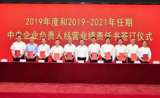 6月12日,國(guó)資委舉行2019年度和2019-2021年任期中央企業(yè)負(fù)責(zé)人經(jīng)營(yíng)業(yè)績(jī)責(zé)任書(shū)簽訂儀式,國(guó)資委黨委書(shū)記、主任郝鵬與20家中央企業(yè)負(fù)責(zé)人現(xiàn)場(chǎng)簽訂責(zé)任書(shū)并座談。郝鵬強(qiáng)調(diào),要認(rèn)真學(xué)習(xí)貫徹習(xí)近平總書(shū)記重要指示精神,堅(jiān)決貫徹落實(shí)黨中央、國(guó)務(wù)院重大決策部署,堅(jiān)持穩(wěn)中求進(jìn)工作總基調(diào),堅(jiān)持貫徹新發(fā)展理念,扎實(shí)做好自己的事,全力以赴穩(wěn)增長(zhǎng),切實(shí)防范化解重大風(fēng)險(xiǎn),努力實(shí)現(xiàn)高質(zhì)量發(fā)展,切實(shí)發(fā)揮好國(guó)民經(jīng)濟(jì)持續(xù)健康發(fā)展的“穩(wěn)定器”作用,彰顯中央企業(yè)的責(zé)任擔(dān)當(dāng)。國(guó)資委副主任、黨委委員孟建民通報(bào)了中央企業(yè)負(fù)責(zé)人經(jīng)營(yíng)業(yè)績(jī)考核目標(biāo)情況。國(guó)資委副主任、黨委委員趙愛(ài)明主持簽訂儀式,國(guó)資委黨委委員出席上述活動(dòng)。