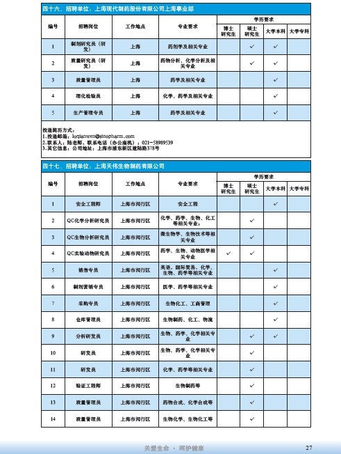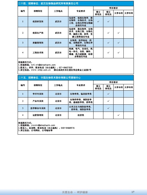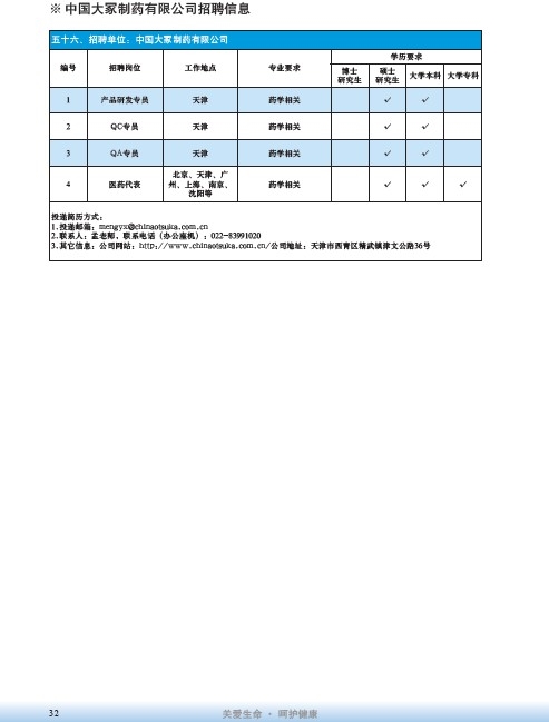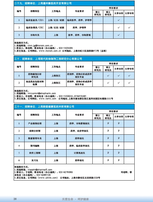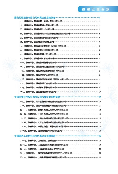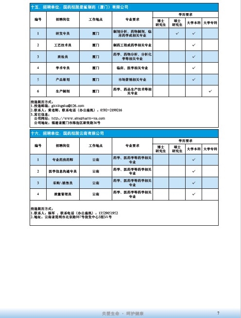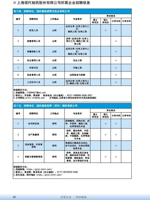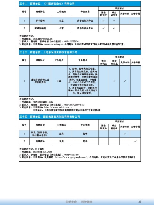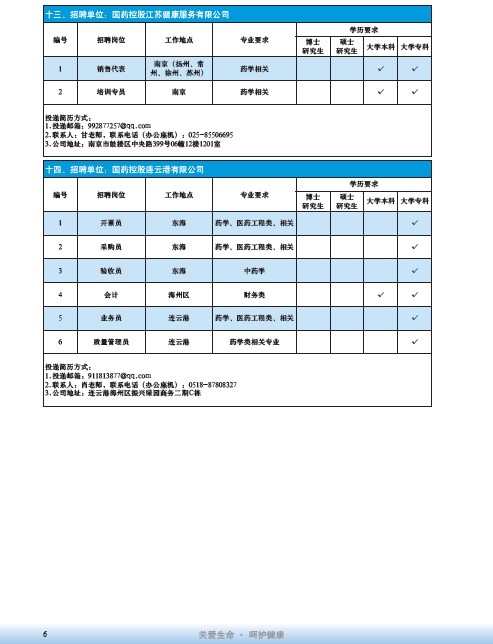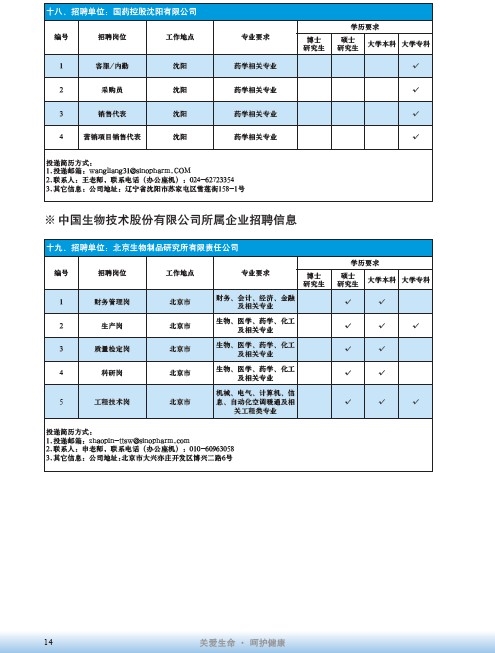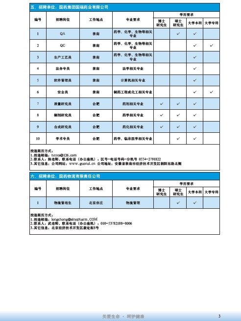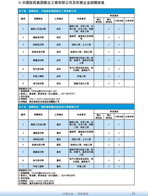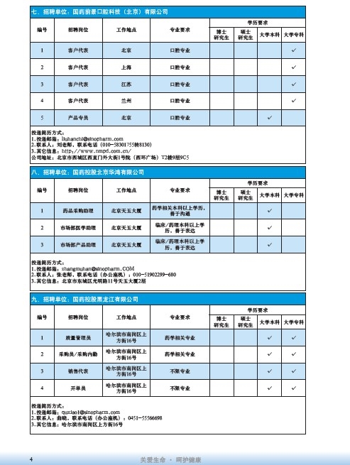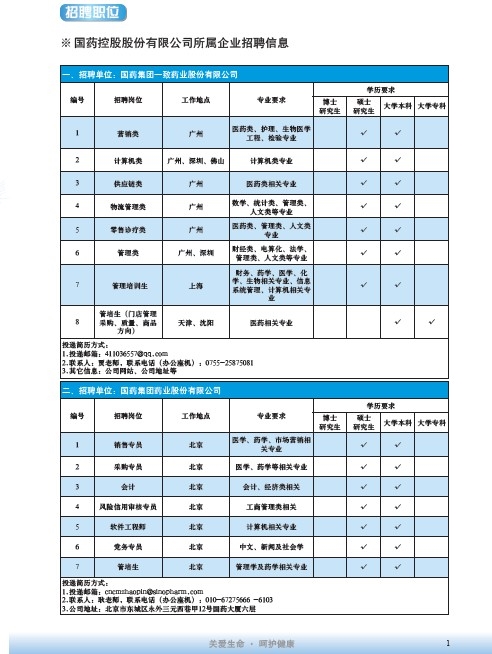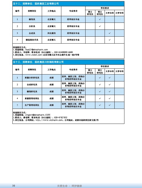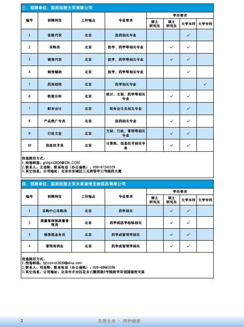 國藥集團(tuán)2020屆高校畢業(yè)生招聘信息匯總表