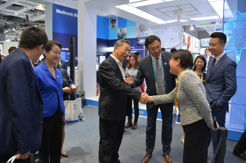 本屆進(jìn)博會醫(yī)療器械及醫(yī)療保健展區(qū)一位難求,但是全球醫(yī)療器械最大企業(yè)美敦力占據(jù)醒目位置。11月6日,美敦力展位迎來國藥集團(tuán)董事長、黨委書記劉敬楨,國藥集團(tuán)副總經(jīng)理石晟怡,國藥控股副總裁、國藥器械總經(jīng)理李楊一行。美敦力介紹了最新技術(shù)進(jìn)展,現(xiàn)場展示了介入心臟起搏器、O型臂術(shù)中影像系統(tǒng)、脊柱手術(shù)機(jī)器人等高科技產(chǎn)品。7日下午,雙方現(xiàn)場簽署醫(yī)療器材產(chǎn)品采購“大單”。兩大集團(tuán)公司強(qiáng)強(qiáng)攜手,為中國引進(jìn)世界先進(jìn)的醫(yī)療設(shè)備和器械,服務(wù)中國醫(yī)療衛(wèi)生事業(yè),為增進(jìn)中國人民健康保駕護(hù)航。