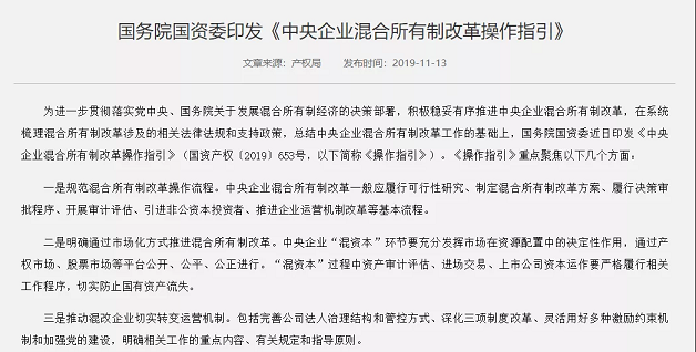 7.國務(wù)院國資委制定《中央企業(yè)混合所有制改革操作指引》