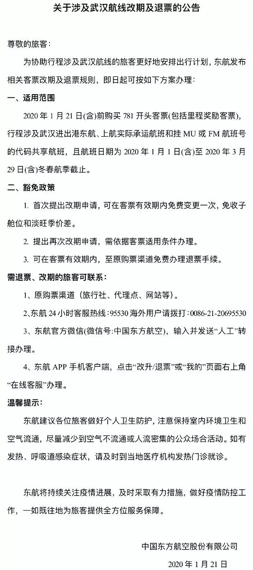 3. 在此期間,已預(yù)訂機票、鐵路等公共交通的訂單,公司將密切關(guān)注機場、航司和鐵路部門針對此次疫情的相關(guān)政策,協(xié)助游客完成退改。