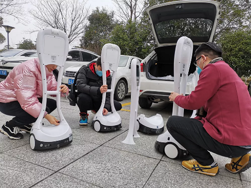 1月24日下午,6臺輔助可操控視頻機(jī)器人送到。上海市公共衛(wèi)生臨床中心供圖