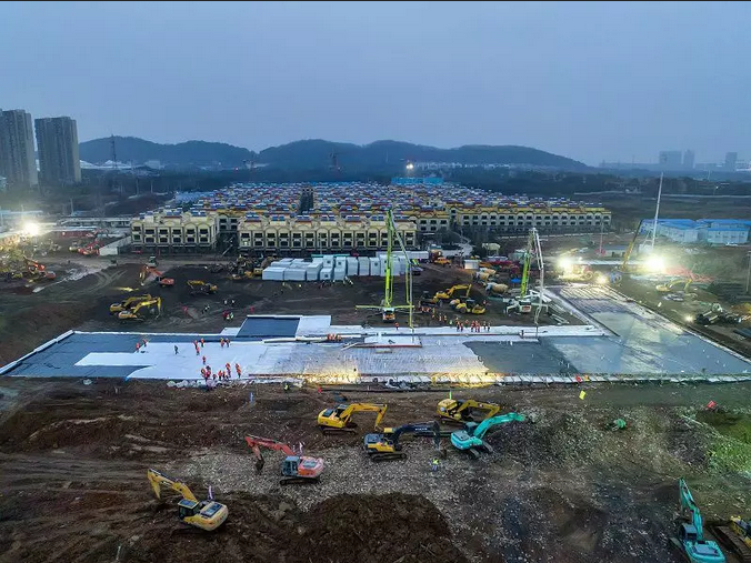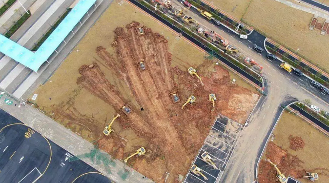 火熱的雷神山醫(yī)院建設(shè)現(xiàn)場。