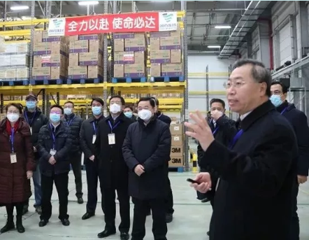 1月29日,國(guó)資委黨委書(shū)記、主任、應(yīng)對(duì)新型冠狀病毒感染肺炎疫情工作領(lǐng)導(dǎo)小組組長(zhǎng)郝鵬到國(guó)藥集團(tuán)進(jìn)行專題調(diào)研,深入國(guó)藥器械北京物流中心,實(shí)地檢查指導(dǎo)疫情防控重點(diǎn)服務(wù)保障工作,向春節(jié)期間堅(jiān)守奮戰(zhàn)在一線的廣大干部職工致以誠(chéng)摯問(wèn)候和崇高敬意。國(guó)資委副主任、黨委委員、應(yīng)對(duì)新型冠狀病毒感染肺炎疫情工作領(lǐng)導(dǎo)小組副組長(zhǎng)任洪斌,國(guó)藥集團(tuán)董事長(zhǎng)、黨委書(shū)記劉敬楨,黨委委員、副總經(jīng)理胡建偉,黨委委員、副總經(jīng)理石晟怡參加調(diào)研。