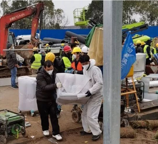 國(guó)藥衛(wèi)勤公司質(zhì)量部負(fù)責(zé)人葉麗娟得知醫(yī)院急需工作人員后,放棄休假,主動(dòng)請(qǐng)纓從安徽老家開(kāi)車(chē)返回武漢抗疫一線,并在醫(yī)院現(xiàn)場(chǎng)組織九人的工作團(tuán)隊(duì)。他們中有有青年志愿者,有貨車(chē)司機(jī),有裝修工人,甚至連環(huán)衛(wèi)工人都參與到裝卸和搬運(yùn)的工作中。他們不辭辛苦,不計(jì)報(bào)酬,在庫(kù)房和醫(yī)院間連續(xù)往返工作24個(gè)小時(shí),徹夜裝卸搬運(yùn)貨物五百余件。任務(wù)緊急,人力不足,工地現(xiàn)場(chǎng)沒(méi)有叉車(chē)等運(yùn)輸工具,甚至連道路都尚未鋪好。在這種環(huán)境下,大家硬是肩挑手扛,用人力一步步把上百斤的醫(yī)療物資扛到病房。