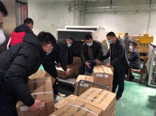 1月27至30日,同樣是來(lái)自武漢的援助呼聲,德州公司先后兩次協(xié)助國(guó)控湖北提取疫情應(yīng)急物資并轉(zhuǎn)發(fā)鐵路快運(yùn)。每次歷經(jīng)赴郊外廠家提貨裝車(chē)、火車(chē)站搬貨至專用車(chē)、平臺(tái)搬貨至平板車(chē)、安檢搬運(yùn)至傳輸帶、傳輸帶搬至站內(nèi)小貨車(chē)、辦理托運(yùn)手續(xù)……一箱箱沉甸甸的急救物資、一遍遍愛(ài)心接力傳遞,國(guó)控德州志愿隊(duì)的同事們沒(méi)有任何怨言。