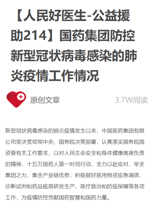【人民好醫(yī)生】國藥集團防控新型冠狀病毒感染的肺炎疫情工作情況