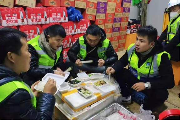 圖3:中國(guó)建筑青年突擊隊(duì)帶頭攻堅(jiān)克難及工地上的年夜飯