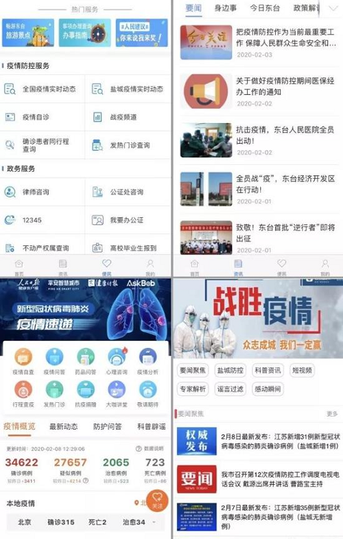 中國普天所屬的普天智慧城市投資江蘇有限公司積極響應(yīng)江蘇東臺(tái)市號(hào)召,運(yùn)用信息化手段全力保障社區(qū)基層疫情防控工作。自2月1日開始,東臺(tái)市民只要登錄移動(dòng)智能門戶“智慧東臺(tái)”APP,就能在線了解全國疫情實(shí)時(shí)動(dòng)態(tài)查詢、鹽城疫情實(shí)時(shí)動(dòng)態(tài)查詢、疫情自診、戰(zhàn)疫頻道、確診患者同行程查詢、發(fā)熱門診查詢等服務(wù)。