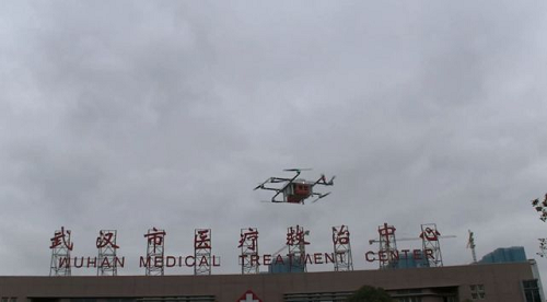 首架“疫情區(qū)應(yīng)急作業(yè)”無人機(jī)降落金銀潭醫(yī)院投送防疫物資