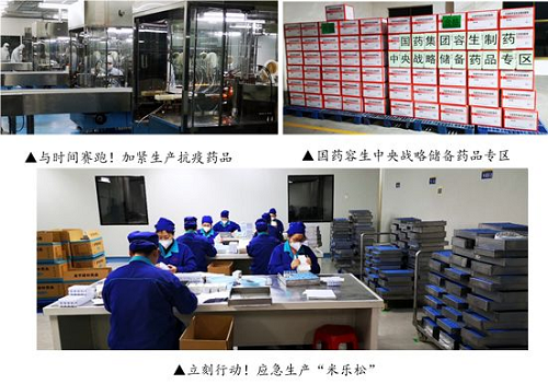 集團(tuán)三大工業(yè)板塊聯(lián)合發(fā)力,及時(shí)組織應(yīng)急復(fù)產(chǎn)復(fù)工,加班加點(diǎn),全力為抗擊疫情提供源源不斷的藥品保障。