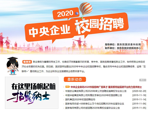 面向畢業(yè)生的校園招聘也是中央企業(yè)關注的重點,2020屆高校畢業(yè)生規(guī)模將達到874萬人的歷史最高點。大多數(shù)央企在春節(jié)前啟動了應屆畢業(yè)生校招工作。目前這些企業(yè)正在按照計劃推進后續(xù)工作,不因疫情變化影響之前既定的招聘安排。國務院國資委網(wǎng)站此前也推出“2020中央企業(yè)校園招聘”專題,加強抗疫期間中央企業(yè)招聘信息的集中發(fā)布。