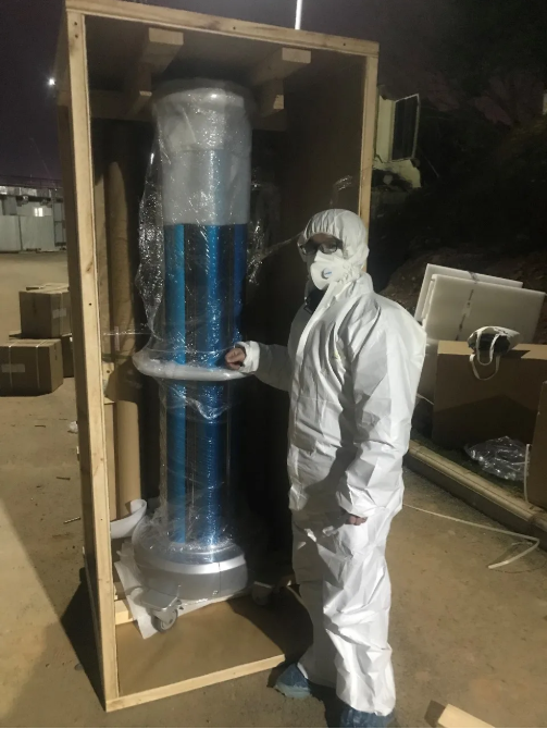 為了能讓這個(gè)“重型武器”盡快發(fā)揮作用,團(tuán)隊(duì)成員穿上兩層防護(hù)服把設(shè)備運(yùn)送到紅區(qū)。沒有猶豫,沒有近距離面對(duì)新冠病毒的恐懼,只有一心保障抗疫前線的責(zé)任和使命感。紫外線機(jī)器人設(shè)備有一人多高,他們小心翼翼地拆卸、組裝、調(diào)試,而身旁經(jīng)過(guò)的就是一批正在轉(zhuǎn)運(yùn)的重癥病人。憑借專業(yè)高效的工作作風(fēng)和不畏艱險(xiǎn)的團(tuán)隊(duì)精神,團(tuán)隊(duì)成員得到了院方的高度贊譽(yù)。
