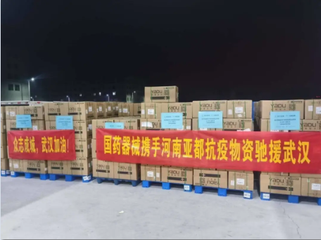 大年初一,國藥器械、河南亞都聯(lián)合捐助的290萬件防護產品星夜兼程運抵武漢。