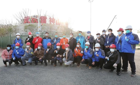 2月20日,被授予“雷神山醫(yī)院榮譽(yù)員工”的中建三局、中南建筑設(shè)計(jì)院等參建單位員工在雷神山醫(yī)院前合影留念。