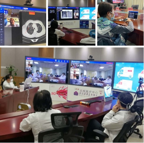 2月25日,在中國聯(lián)通5G網(wǎng)絡(luò)和醫(yī)療云平臺(tái)支撐下,橫跨武漢、北京和舟山三地共六個(gè)會(huì)場的新冠肺炎CT遠(yuǎn)程會(huì)診順利舉行。