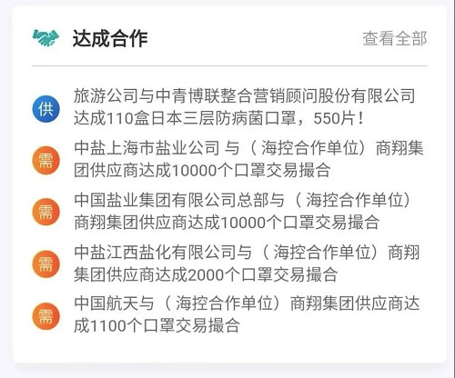 平臺充分發(fā)揮中央企業(yè)上下游生態(tài)圈協(xié)同優(yōu)勢,調動相關國資國企物資生產技術能力和物資儲備庫存,并積極吸引社會企業(yè)提供疫情防控物資、原材料、生產設備等資源渠道,推動全社會信息廣泛共享,實現(xiàn)線上無縫銜接、線下精準對接、高效達成合作,全面助力防疫防護物資生產供應和企業(yè)復工復產。