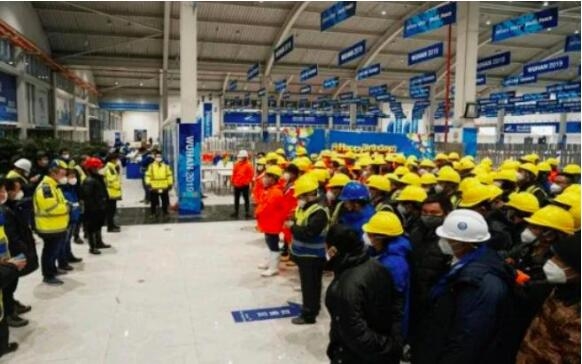 再一個就是安全防疫難度大。施工高峰期,25000名建設(shè)者24小時兩班倒不停歇施工,存在著大規(guī)模人員聚集、大范圍廣場作業(yè)、長時間疲勞作業(yè)等疫情防控風(fēng)險。