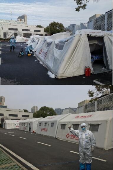 在武漢開展救治的全國20支省區(qū)市國家緊急醫(yī)學(xué)救援隊(duì),都裝備有蘇州江南公司研制生產(chǎn)的“移動醫(yī)院”裝備,所以保障隊(duì)員的工作必須24小時待命,內(nèi)部實(shí)行排班制,全天候保障。由于在疫區(qū)對設(shè)備進(jìn)行檢修、調(diào)試,同樣存在著很高的病毒感染危險(xiǎn),保障隊(duì)員也必須穿著防護(hù)服工作。他們擔(dān)心物資緊缺,所以每次進(jìn)去保障都是中間無休,盡可能多地完成工作。