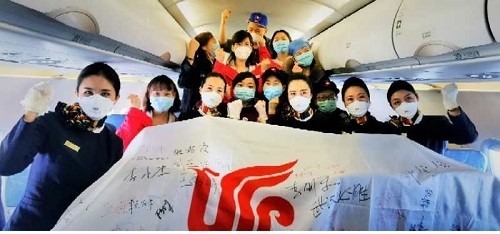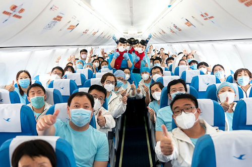 3月17日,東航執(zhí)行首批6班返程包機(jī),接回江蘇、甘肅、青海援鄂醫(yī)療隊(duì)員681人。