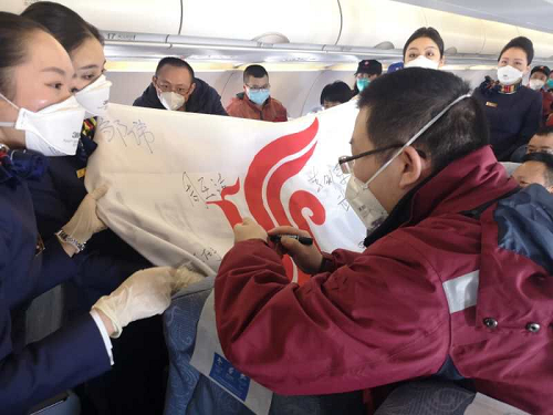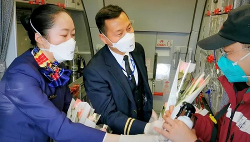 3月17日,國航派出2架包機(jī)飛赴武漢,護(hù)送白衣天使回家。CA044航班、CA042航班先后于北京時間17時10分和17時49分安抵成都。