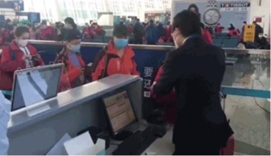 在武漢天河機(jī)場,各地醫(yī)療隊(duì)相繼到達(dá),為了表達(dá)湖北人民對白衣戰(zhàn)士的感恩,國航按照VVIP級別保障航班。