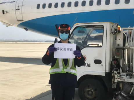 中國航油武漢航空加油站嚴(yán)陣以待、全力以赴,完成16架醫(yī)護(hù)包機(jī)安全供油保障工作。加油結(jié)束后,飛機(jī)加油員們立正目送廊橋上醫(yī)護(hù)人員登機(jī)的身影,心中涌動著五十多天來難以言語的戰(zhàn)“疫”感恩之情。