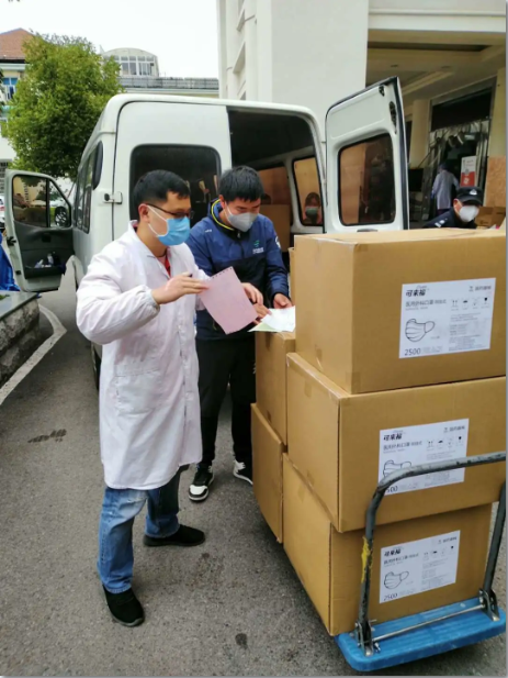 每天14點(diǎn)后,公司安排車輛自枝江提貨,取貨后連夜送往國(guó)藥器械華中物流倉(cāng)庫(kù)。第二天早上8點(diǎn),物流部同事們卸貨驗(yàn)收,然后根據(jù)省防控指揮部配送清單統(tǒng)一將口罩清點(diǎn)打包,之后根據(jù)配送數(shù)量分配任務(wù)。確保當(dāng)天的配送任務(wù)在16點(diǎn)前完成,并于17:00-19:00統(tǒng)一匯報(bào)給省市防控指揮部。