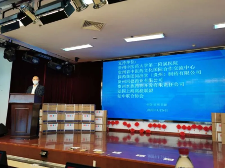 在捐贈儀式上,貴州省中醫(yī)藥管理局黨組書記、局長于浩表示,疫情發(fā)生以來,貴州全省中醫(yī)藥系統(tǒng)認(rèn)真貫徹習(xí)近平總書記對疫情防控工作的系列指示精神,全面落實(shí)省委省政府決策部署,在新冠肺炎疫情戰(zhàn)“疫”中充分發(fā)揮中醫(yī)藥優(yōu)勢,堅持中西醫(yī)結(jié)合治療取得實(shí)效。疫情沒有國界,貴州省中醫(yī)藥管理局與法國法中協(xié)會等機(jī)構(gòu)有著長期友好的合作關(guān)系,衷心希望能在此基礎(chǔ)上分享抗擊新冠肺炎疫情的“貴州方案”。