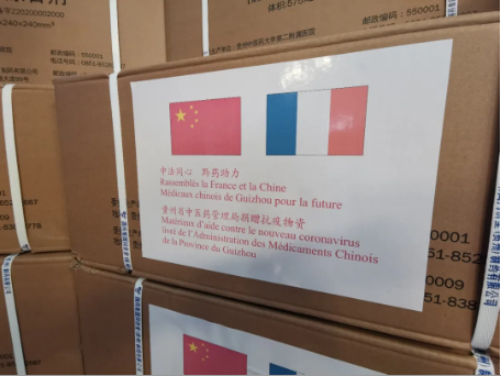 本批捐贈給法國東部大區(qū)的抗“疫”物資由貴州省中醫(yī)藥管理局發(fā)起籌集,由貴州中醫(yī)藥大學(xué)專家團(tuán)隊(duì)研發(fā)、經(jīng)貴州省藥品監(jiān)督管理局備案,國藥集團(tuán)同濟(jì)堂制藥及部分民族醫(yī)藥企業(yè)生產(chǎn)。