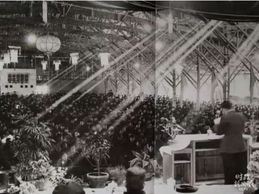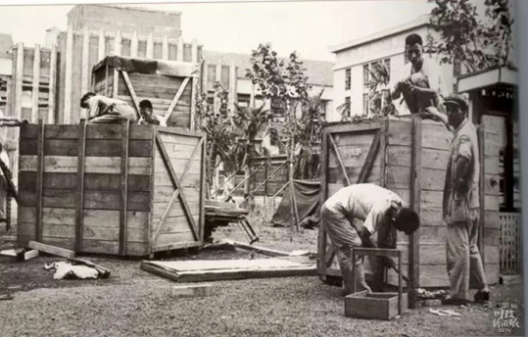 △1957年,學校的大禮堂還沒有建成,學校請來工匠用竹子搭建了這座臨時“草棚大禮堂”。在很長一段時間里,學校開大會、文藝演出、放電影都在這里進行。