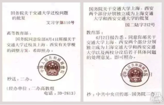 △這是1957年國務院關于交大分設兩地及1959年各自獨立建校的文件。
