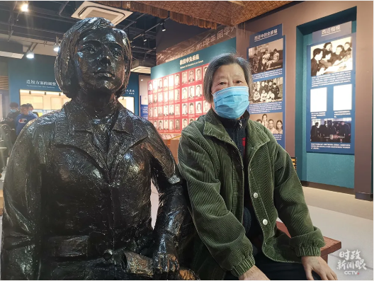 △這位精神矍鑠的老教授叫胡奈賽,當年西遷時,她只有22歲。交大西遷博物館開放后,她一直有個心愿,想跟圖左的雕塑合張影。因為雕塑的衣服是仿照西遷時她的衣服樣式制作的,實在太有紀念意義。今天,她夢想成真。(總臺央視記者王曉東拍攝)