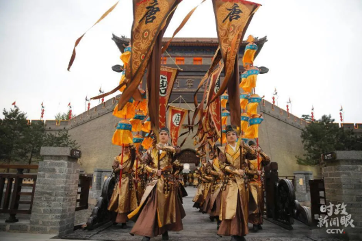 △2015年5月14日,古城樓永寧門外,盛唐武士和宮女正在列隊迎賓。