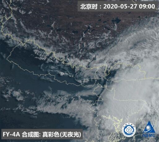 ▲ FY-4A靜止氣象衛(wèi)星監(jiān)測動畫(2020年5月27日07:35至11:15)