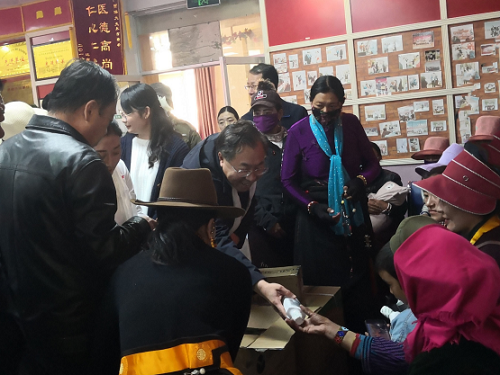 緊接著,調(diào)研組走進(jìn)治多縣婦幼保健院,詳細(xì)查看近年來(lái)援建科室及設(shè)備的運(yùn)行使用情況,全面了解該院的發(fā)展情況。國(guó)藥集團(tuán)通過(guò)連續(xù)幾年在資金、設(shè)備、技術(shù)和人員培訓(xùn)等方面的重點(diǎn)幫扶,使這所縣級(jí)婦幼保健院率先通過(guò)二甲評(píng)審,在玉樹(shù)全州乃至青南藏區(qū)都居于前列,接診患者數(shù)量連年大幅增長(zhǎng),顯著提升了當(dāng)?shù)氐尼t(yī)療服務(wù)水平。在調(diào)研現(xiàn)場(chǎng),劉敬楨、楊柳還向就醫(yī)群眾發(fā)放了國(guó)藥集團(tuán)引進(jìn)捐贈(zèng)的口腔護(hù)理用品。