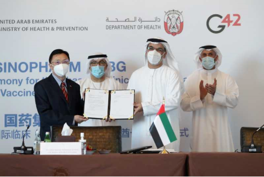 6月23日,國藥集團(tuán)中國生物新冠滅活疫苗國際臨床(Ⅲ期)阿拉伯聯(lián)合酋長國啟動(dòng)儀式在中國北京、武漢、阿聯(lián)酋阿布扎比三地,以視頻會(huì)議方式同步舉行,阿聯(lián)酋衛(wèi)生部長向國藥集團(tuán)中國生物頒發(fā)了臨床試驗(yàn)批準(zhǔn)文件。