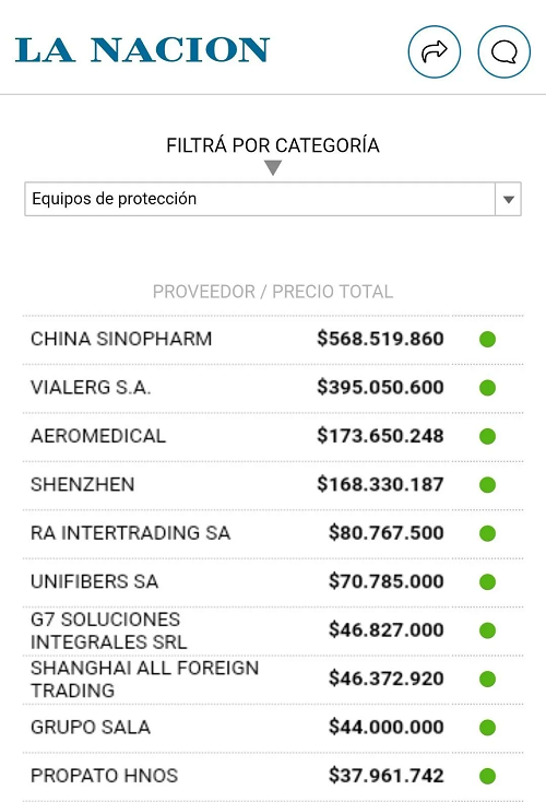 近日,阿根廷《國家報(bào)》發(fā)布了一份向阿根廷政府提供抗擊新冠疫情醫(yī)療產(chǎn)品的供應(yīng)商名單,國藥集團(tuán)國藥國際在個人防護(hù)用品類產(chǎn)品全球供應(yīng)商中位列榜首。此前,國藥國際已向阿根廷供應(yīng)了300萬個醫(yī)用外科口罩、30萬件醫(yī)用一次性防護(hù)服等抗疫物資。截至7月4日,14個批次的物資已分別搭乘專機(jī)全部運(yùn)抵阿根廷首都布宜諾斯艾利斯。
