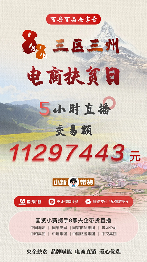 此次“‘三區(qū)三州’電商扶貧日”直播帶貨活動 ,由國資委科技創(chuàng)新和社會責任局、宣傳工作局指導,國資委新聞中心、中央企業(yè)電商聯(lián)盟、中央企業(yè)媒體聯(lián)盟主辦,國網電商、騰訊微信協(xié)辦,旨在結合國資委“百縣百品央字號”、騰訊微信“88智慧生活日” 兩大品牌的核心優(yōu)勢,進一步貫徹落實黨中央關于決戰(zhàn)決勝脫貧攻堅決策部署和中央企業(yè)決戰(zhàn)決勝脫貧攻堅視頻會議精神,在消費扶貧工作中更好地發(fā)揮好國資央企的平臺優(yōu)勢、資源優(yōu)勢。
