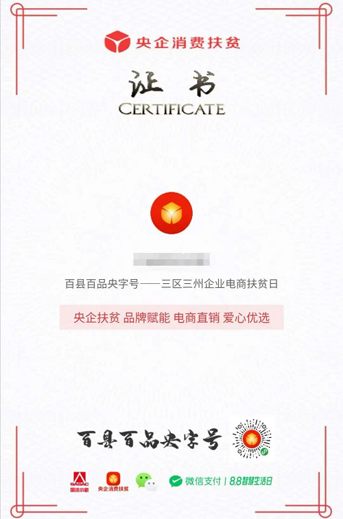 ▲網友在直播間下單后,小程序自動生成“央企消費扶貧電子證書”。