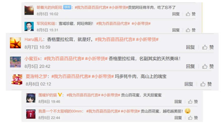 除了農特產品,直播帶貨還創(chuàng)新加入圖片、視頻等元素,著重推介“三區(qū)三州”的旅游資源。“旅游搭臺,扶貧唱戲”,邊疆美景和風土人情為此次直播帶貨增強了文化厚度,為“三區(qū)三州”塑造了“美食+美景”的雙重地區(qū)特色品牌。