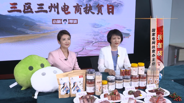 ▲國家電網扶貧辦主任張蓮瑛,在直播間為網友推薦青海果洛州瑪多牦牛肉。