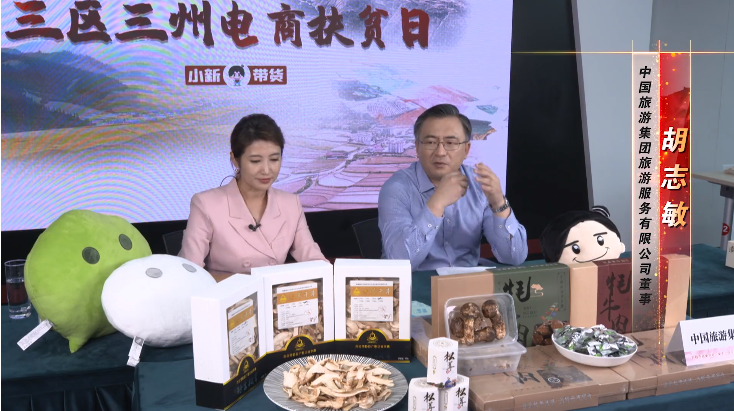 ▲中國旅游集團旅行服務有限公司董事、紀委書記胡志敏,將“菌中之王”香格里拉松茸帶到直播間。