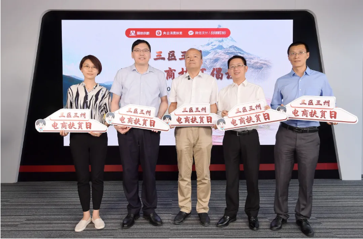 在“‘三區(qū)三州’電商扶貧日”的直播帶貨現場,中央企業(yè)電商聯(lián)盟、中央企業(yè)媒體聯(lián)盟、騰訊微信面向所有中國企業(yè)和社會各界發(fā)起《企業(yè)電商扶貧“三區(qū)三州”倡議書》:充分發(fā)揮中國企業(yè)的市場主體作用,助力“三區(qū)三州”開展產業(yè)扶貧、增加有效供給,培育內生動力,推進可持續(xù)發(fā)展;充分發(fā)揮電商平臺的引領帶動作用,助力“三區(qū)三州”開拓線上渠道、培訓電商人才,產銷結合、以銷促產,讓特色產品對接更大線上市場,讓電商扶貧惠及更多貧困群眾。