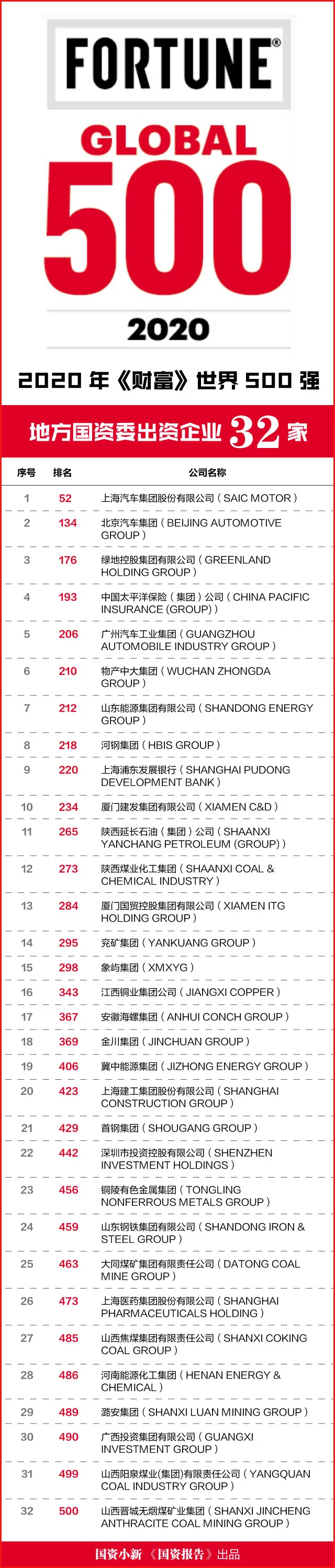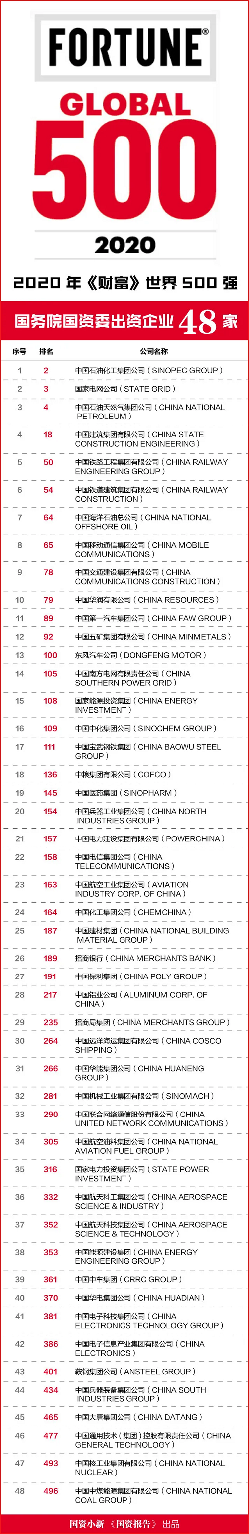 本年度《財(cái)富》世界500強(qiáng)中,國(guó)務(wù)院國(guó)資委出資的中央企業(yè)共有48家入圍,地方國(guó)資委出資的國(guó)有企業(yè)共有32家入圍。