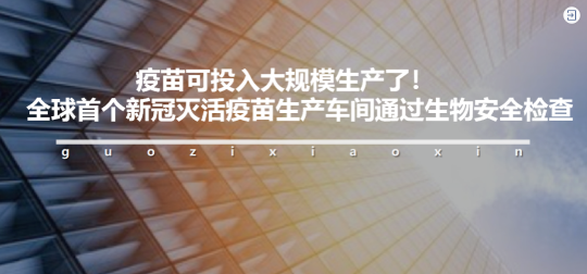 日前,國(guó)藥集團(tuán)中國(guó)生物北京生物制品研究所新冠滅活疫苗生產(chǎn)車間通過國(guó)家相關(guān)部門組織的生物安全聯(lián)合檢查,具備了使用條件。