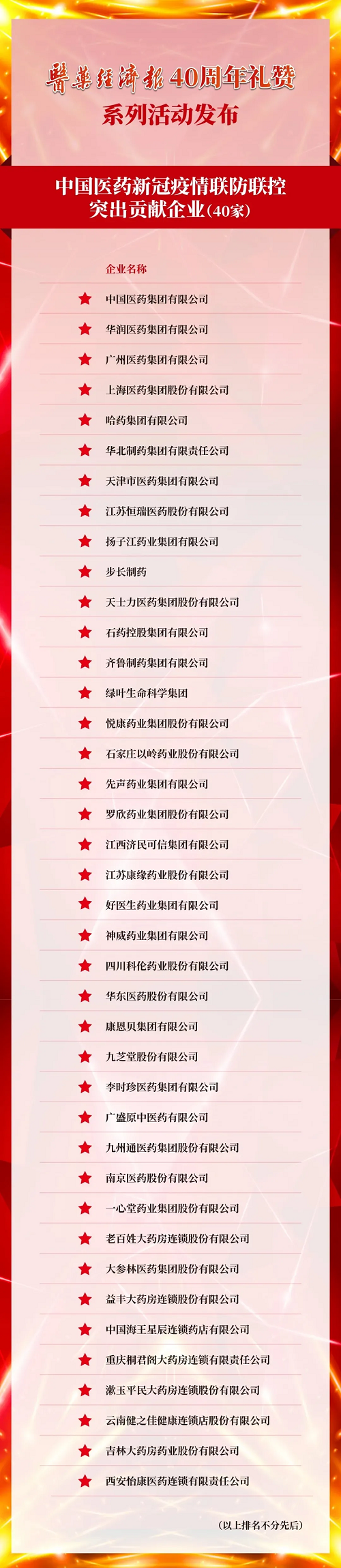 在抗擊新冠疫情期間,中國(guó)醫(yī)藥行業(yè)躬耕踐行擔(dān)當(dāng)精神,一批勇于承擔(dān)社會(huì)責(zé)任的醫(yī)藥企業(yè)在復(fù)工復(fù)產(chǎn)、藥物研發(fā)、捐醫(yī)贈(zèng)藥、社會(huì)公益等方面率先垂范,勇當(dāng)共克時(shí)艱的表率,展現(xiàn)了高度社會(huì)責(zé)任擔(dān)當(dāng)與家國(guó)情懷。8月25日,“醫(yī)藥經(jīng)濟(jì)報(bào)40周年禮贊•中國(guó)醫(yī)藥新冠疫情聯(lián)防聯(lián)控突出貢獻(xiàn)企業(yè)”發(fā)布,國(guó)藥集團(tuán)再獲殊榮。